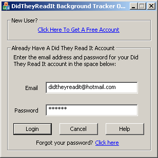 This is where you enter your DidTheyReadIt account information (email address and password) for the background tracker.