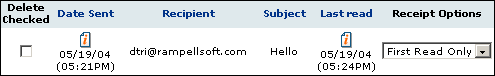 A Read Receipt is what you get when your tracked email is read. When you are in the "Tracked Mail" section of the site, in icon with an "i" appears under the column labeled "Last Read". To view your Read Receipt just click on the "i".